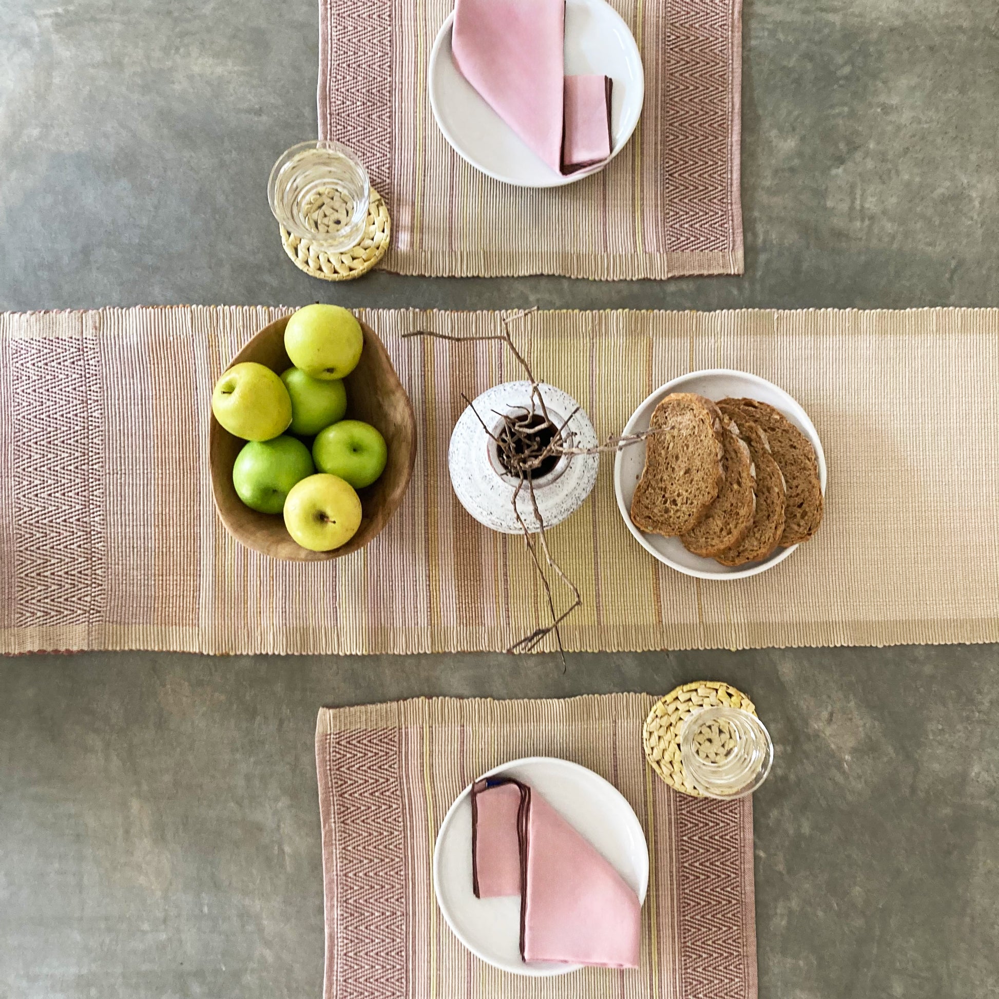 Our table runners are hand woven in chunky cotton in a muted dual colour herringbone pattern that feature a gentle tonal border and edge. A stylish and simple design for everyday use or for casual dining.